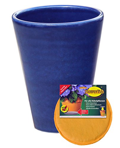 Vorteils Set: Pflanzkübel mit Wasserablauf – Premium Steinzeug Keramik Qualität inclusive „FlowerPad“ Drainage System – Profi Set 100% frostsicher
