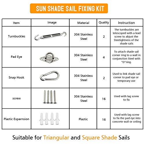 Einfache Anwendung Auf Soliden Strukturen: Diese sonnensegel installation hardware kit ist einfach zu verwenden auf festen strukturen qua trockenbau, beton, ziegel, holz und zementmauer. Sie bietet platz für jede art von quadratischen und rechteckigen sonnensegel und kann ihren lieblings-entspannungsort mit leichtigkeit einrichten.