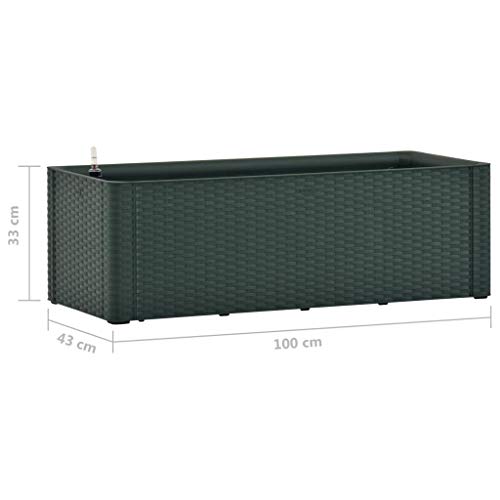 Farbe: Grün. Material: PP (Polypropylen). Abmessungen: 100 x 43 x 33 cm (B x T x H).Fassungsvermögen: 90 L. stattdessen den Innen- ebenso Außenbereich sinnvoll. Mit Hilfe von Selbstbewässerungssystem ebenso Füllstandsanzeige. Rattan-Optik. UV-, wetter- ebenso frostbeständig. Aufrichtung erforderlich: Ja