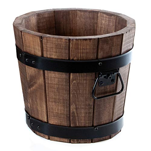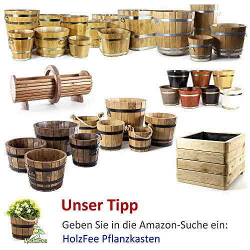 Die Pflanzkübel sind ganz getrocknetem Kiefernholz in traditioneller Handarbeit gefertigt und mit dunklem Wallnussöl geschützt, was in Verbindung mit den schwarz lackierten Stahlspannringen, welche zusätzlich mit 2 Bügelgriffe ausgestattet sind, einen schönen rustikalen Letter verleiht. Diese Kübel sind natürlich für die Reihenfolge im Freien im Rahmen. Mittig haben diese im Boden ein Loch, dementsprechend keine Überbewässerung entsteht und das Wasser nach Regen vulgo verstreichen kann. Bei Terrassen kann ungeachtet ein Untersatz empfehlenswert sein.