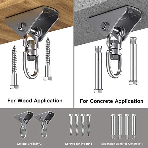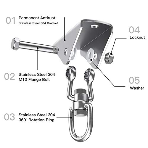 Honmax Deckenhaken Hängesessel 360° Schaukelhaken 2er Set, Edelstahl Halterung Deckenhalterung bis 500KG für Outdoor…