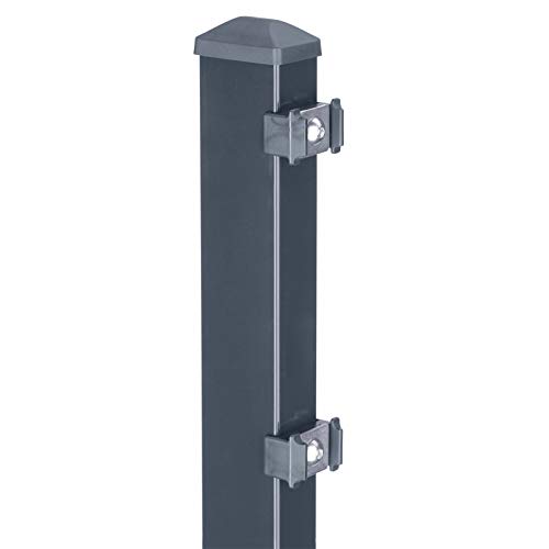 Feuerverzinkt außerdem pulverbeschichtete Pfosten, Mittelmaß 60×40 mm, Zaunhöhe + ca. 2 cm Überstand oben + 5 cm Entfernung zum Grund herunter