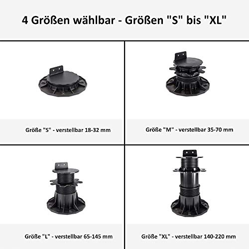 HORI Stelzlager für Terrassen Größe „M“ – stufenlos höhenverstellbar von 35 – 70 mm