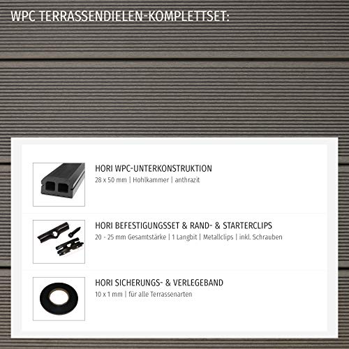 RUNDUM-SORGLOS-PAKET – beinhaltet: Terrassendielen, Unterkonstruktion, Befestigungsclips, Verlegeband