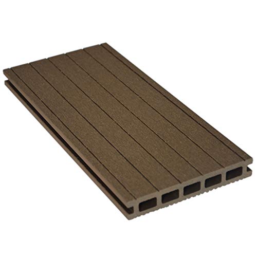 WPC/BPC Dielen in 140 mm Breite mit einem Holzanteil von ca. 60 % und einem Kunststoffanteil von ca. 40 % – fein geriffelte / dickfellig genutete Oberfläche