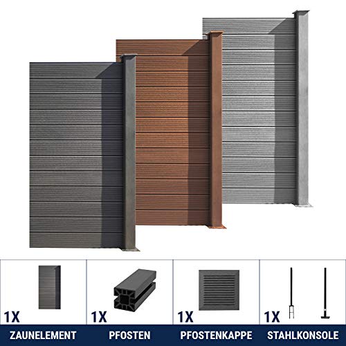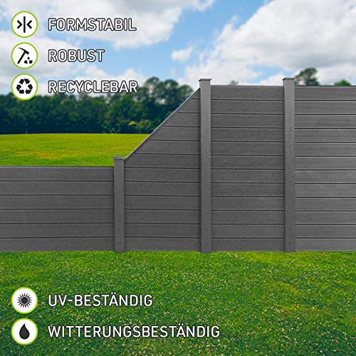 HORI® WPC Garten Zaun I Lamellenzaun, Sichtschutz Komplettset I beidseitig glatt I Anthrazit I Höhe cm I 1x Schmal und…