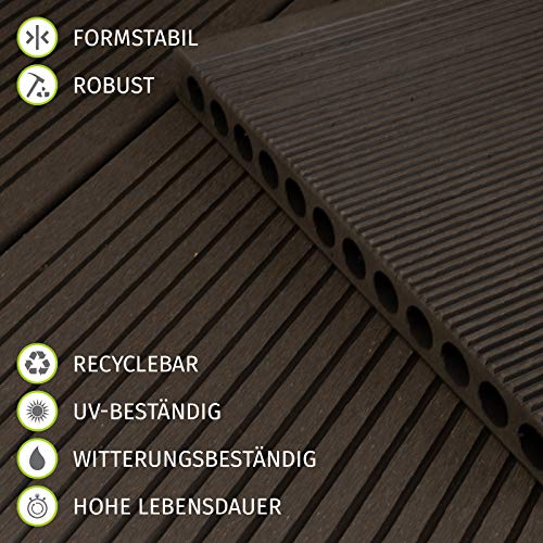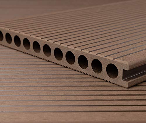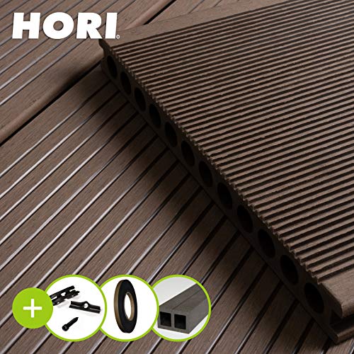 HORI® WPC-Terrassendiele Braun XXL Hohlkammer Diele I Komplettset inkl. 40×60 mm Unterkonstruktion & Clips I Fläche: 20…