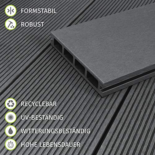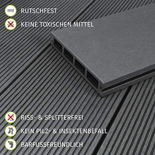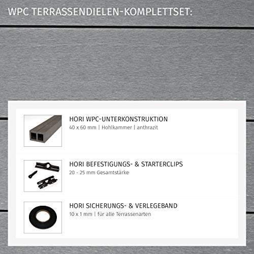 HORI® WPC-Terrassendiele Kuba grau Hohlkammer I Komplettset inkl. 40×60 mm Unterkonstruktion & Clips I Fläche: 93 m² I 2…