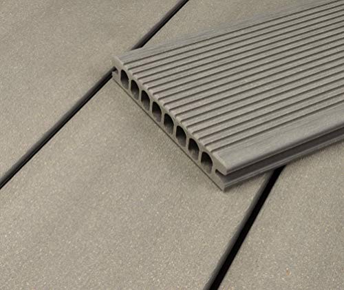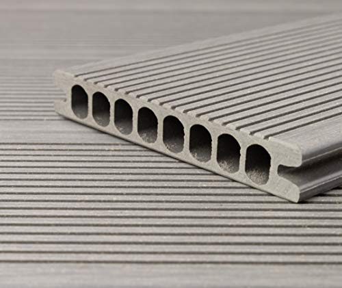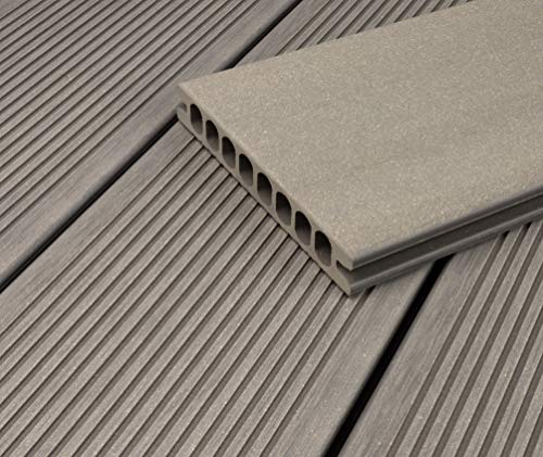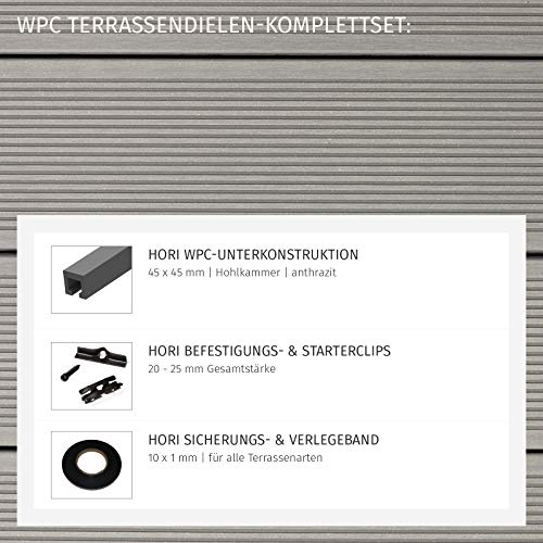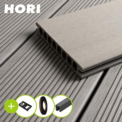 HORI® WPC-Terrassendiele Royal Hellgrau Hohlkammer I Komplettset inkl. 45×45 mm Unterkonstruktion & Clips I Fläche: 72…
