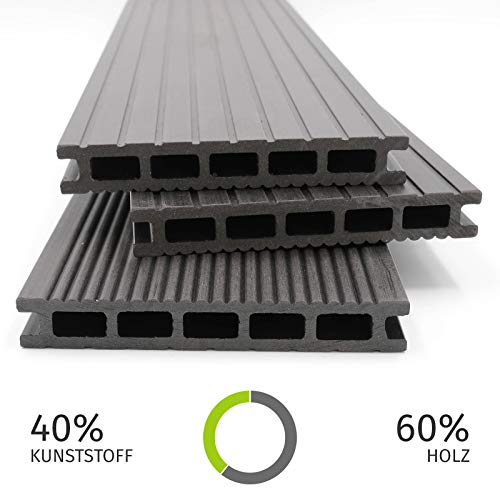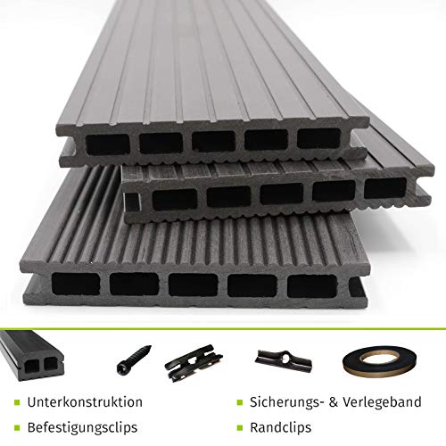 HORI® WPC-Terrassendielen Malta anthrazit I Komplett-Set inkl. 28×50 mm Unterkonstruktion & Clips I Dielenlänge 3,20 m I Fläche 50 m²