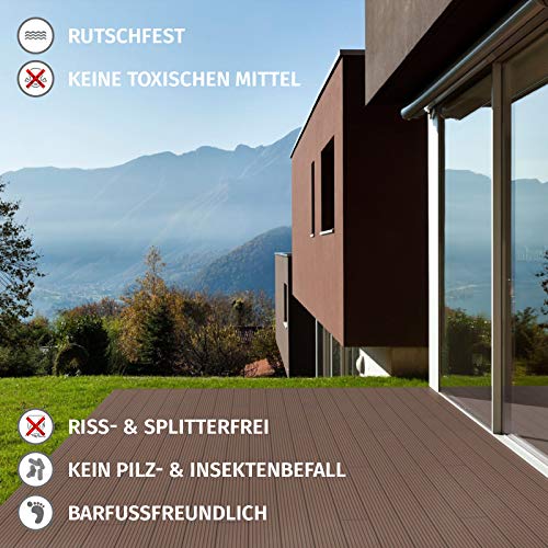 PFLEGELEICHT & BARFUßFREUNDLICH – ca. 60% Holzanteil und ca. 40% Kunststoffanteil – splitterfrei, UV-beständig, resistent gegen Witterungseinflüsse