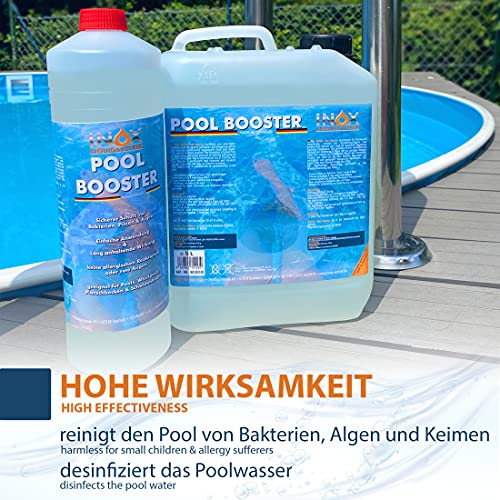 Der INOX® Pool Booster desinfiziert das Poolwasser und reinigt den Pool von Bakterien, Algen und Keimen. Unser Pool Booster sorgt statt zuverlässige Poolreinigung bei freilich geringen Mengen an Chlor.