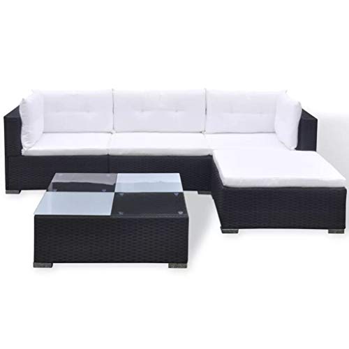 Irfora Gartenmöbel Sofa Gartencouch 5-TLG. Garten Lounge Set mit Auflagen Poly Rattan Schwarz