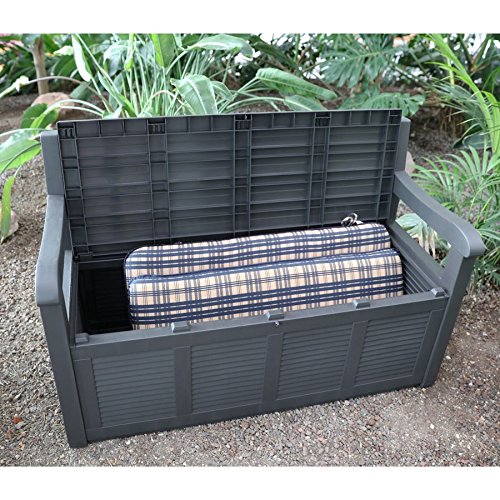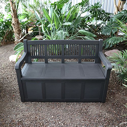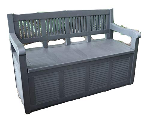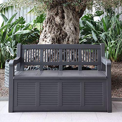 Praktische Kombination jeder 2-Sitzer Gartenbank u. a. Kissen- oder Gerätebox. Die Truhenbank ‚Salzburg‘ besteht jeder widerstandsfähigem u. a. witterungsbeständigem Kunststoff in Steinkohle-Brauner Farbgebung. Am Boden der aufklappbaren Sitzfläche befindet sich ein großes Staufach per ca. 280 Liter Fassungsvermögen. An diesem Ort können Sie problemlos Kissen, Polsterauflagen oder vulgo Gartenzubehör unterbringen. Kombiniert 2-Sitzer Gartenbank per Aufbewahrungsbox