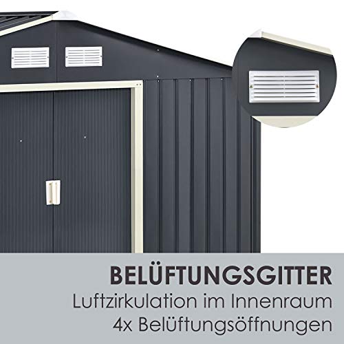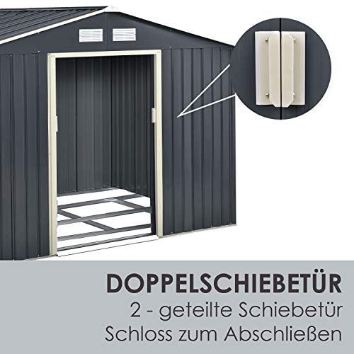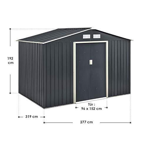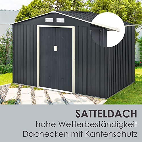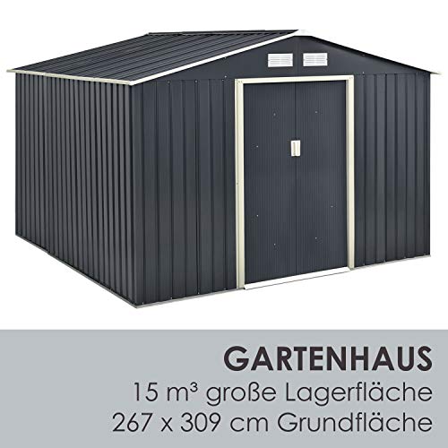 Juskys Metall Gerätehaus XXL 15m³ mit Satteldach, Schiebetür & Fundament – 277 x 319 x 192 cm – anthrazit – Geräteschuppen Gartenhaus Metallgerätehaus