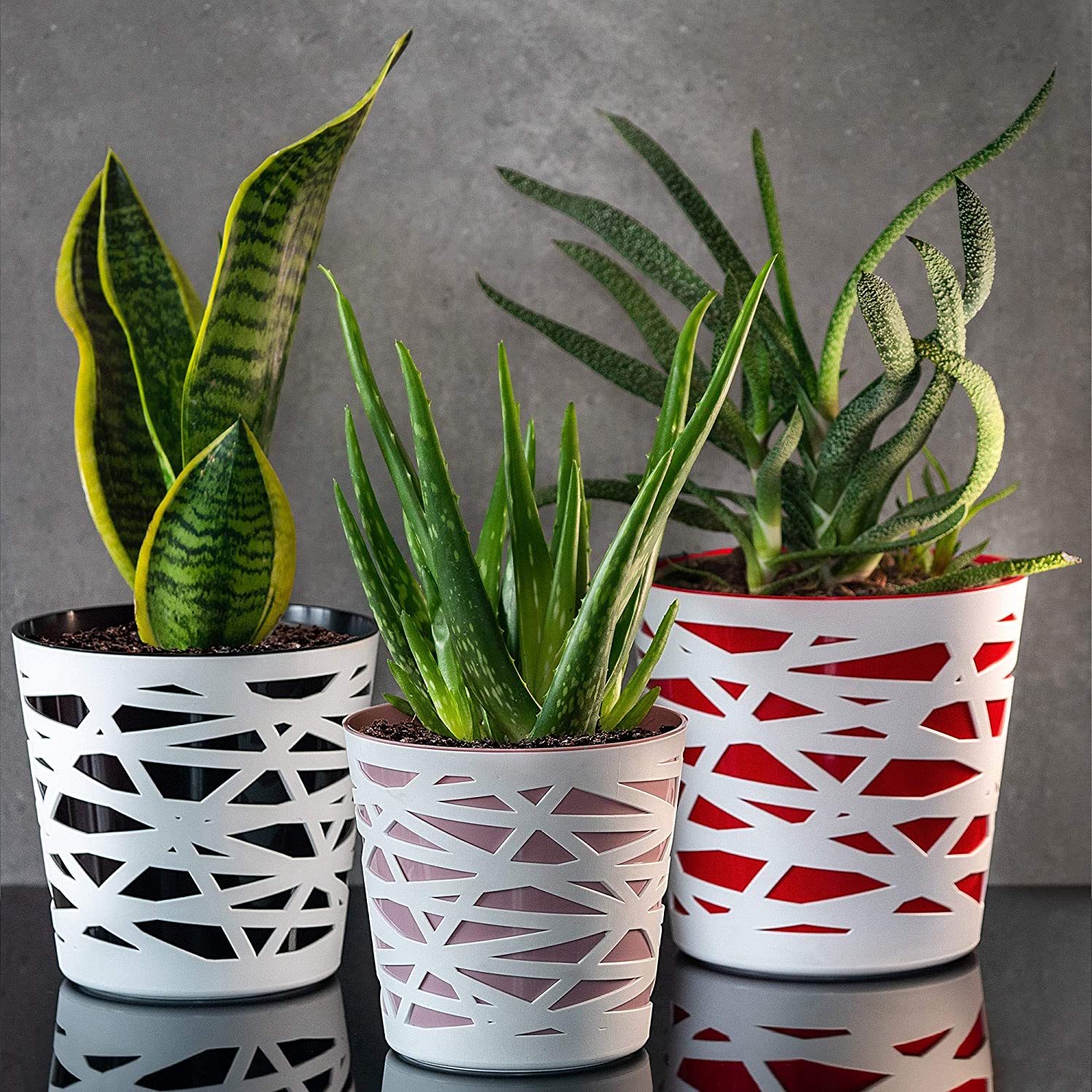 🌼 DER BLUMENTOPF AUS EINEM WIDERSTANDSFÄHIGEN KUNSTSTOFF IST RESISTENT GEGEN BESCHÄDIGUNGEN ODER KRATZER. Dank der bunten Farbgebung kann man den Topf den eigenen ästhetischen Vorlieben und der Einrichtung des Raumes einsetzen. Erhältlich in fünf Farben: schwarz, rot, rosa, grau und pfirsichfarben.