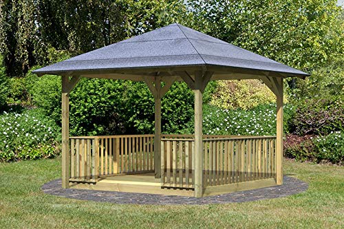 Karibu 4-Eck Pavillon ECO Cordoba mit Brüstungselementen und Fußboden. Pfosten jedweder 9 x 9 cm starkem