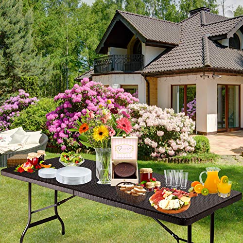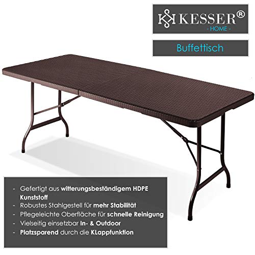 KESSER® Buffettisch Tisch klappbar Kunststoff 180×75 cm Rattan Optik Campingtisch Partytisch Klapptisch Gartentisch für…