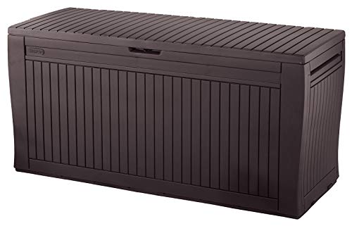 Keter Comfy Aufbewahrungsbox für den Außenbereich, Kunstharz, Kunststoff, Holzoptik, wetterfest, Braun