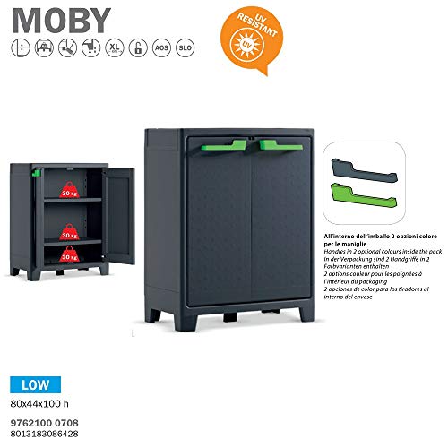 Die Moby-Reihenfolge ist sondern den Außenbereich geschaffen. Der niedrige Schrank ist ausgestattet mittels 2 höhenverstellbare Fachböden, und hat eine Gesamtbelastbarkeit von 90 kg.