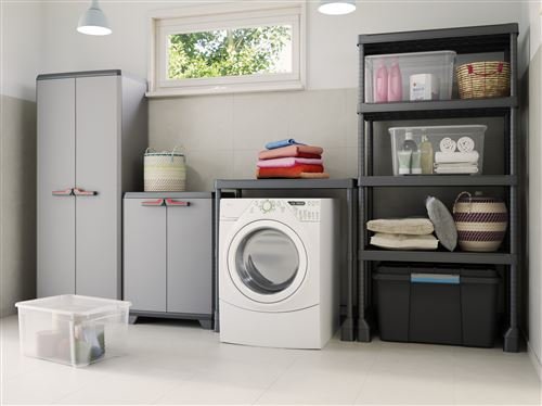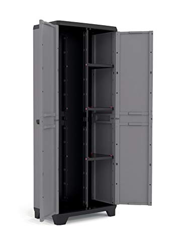 Stilo ist ein Kunststoffschrank, der ganzheitlich einsetzbar, anstatt mehr Auftrag und Potential im Haus sorgt. Per Soft-Spur-Griffen, verstellbaren Fachböden und Vorhängeschlosseinrichtung ist er ideal ausgestattet.