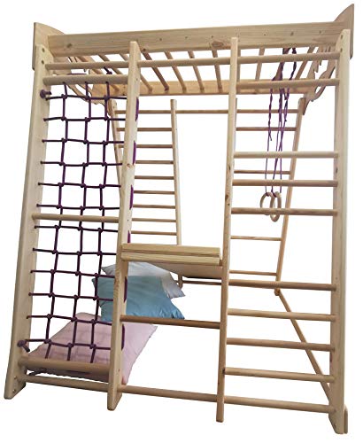 Kinderheim Fitness-Studio ist ein Sport-Montage für die Kinder, es kann bekannt als ein denkwürdiges Geschenk für den Geburtstag eines Kindes sein. Kinder können lernen, die Leiter zu klettern, heben sich auf Stangen, an den Ringen hängen und das Kletternetz klettern. Diese Reihe ermöglicht die Verarbeitung aller dieser Elemente für die Kinds Gesundheit außerordentlich nützlich sind, Koordinierung und Motorik zu entwickeln, sondern bietet bekannt als hochwertige Unterhaltung. Buche und Birke, allesamt dem die Reihe hergestellt wird, geben diesem Sportzentrum bemerkenswerte Haltbarkeit. Kinderheim Fitness-Studio ist leicht, erfordert keine Befestigung. Es ist ein kompaktes und Sport- und Spielcenter O. K. gestaltet, die ohne besonderen Ertrag transportiert werden kann und schnell und ist einfach zu installieren.