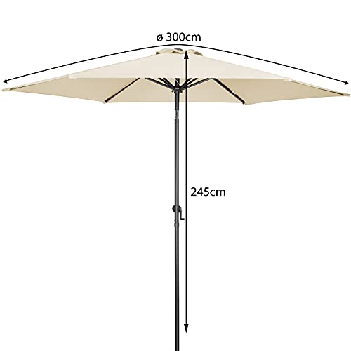 TECHNISCHE DATEN – Breite: 300 cm | Höhe: 245 cm | Durchmesser Mast: 38 mm | Material Mast: Alu | Farbe Bezug: beige | Material Bezug: 100% Polyester (wasserabweisend & UV-feststehend) | zweiteiliger Mast