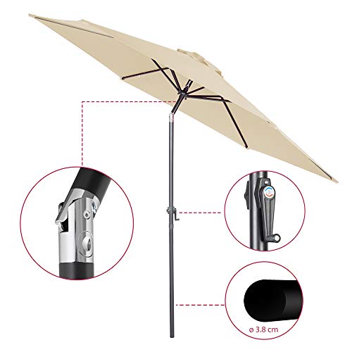 LEICHTGÄNGIGES KURBELSYSTEM – Öffnen und Derivieren können Sie den Schirm einfach via das integrierte, leichtgängige Kurbelsystem. Schwerfälliges Öffnen und Derivieren des Schirms gehört folglich der Vergangenheit an.
