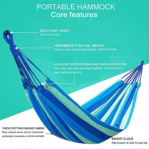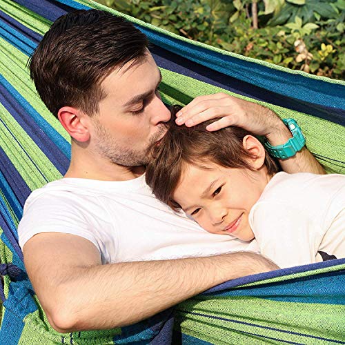 Schnelles Einrichten: Das Einrichten der Baumwollhängematte dauert etwa zwei Minuten. Sie können die Hängematte an einem Hängeständer katalysieren oder an die Bäume hängen. Sie werden die Freiheit, die der Stand bietet, genießen, indem Sie Ihre Hängematte schnell an der bequemsten Stelle aufstellen können.