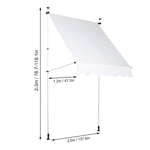 【Maximale Schattengröße 350 x 120 cm】 Stoffgröße: Ca. 350 x 180 cm (137,8 x 70,9 Aufschlag), Die Stützteile sind durch hochwertige Gummipads geschützt, um maximalen Grip und Rutschfestigkeit zu gewährleisten, Der versenkbare Baldachin mit Stahlrahmen eignet sich perfekt für Innenhöfe, Gärten, Türen und Fenster im Freien