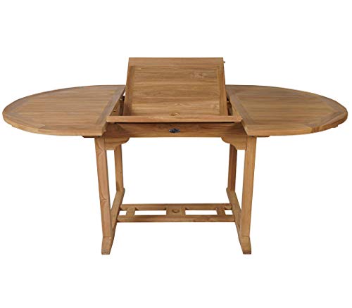 Großer, ovaler und ausziehbarer Gartentisch alle echtem Teakholz alle kontrolliertem Agrar