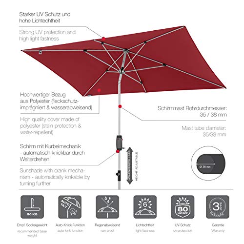 *Lieferumfang: Kleiner Sonnenschirm AUTOMATIC 260×165 cm, rechteckig, Schirmdach automatisch knickbar – ohne Sockel