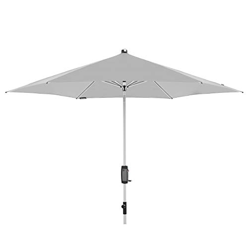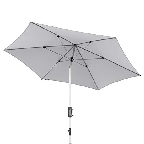 Der runde Outdoor Sonnenschirm in modernem Design bietet Ihnen perfekten Sonnenschutz, ob auf dem Balkon oder der Terrasse. Durch die komfortable Bedienung mit Kurbel lässt sich der Gartenschirm leicht öffnen und deduzieren. Zudem können Sie dank der leicht zu bedienenden Knickvorrichtung und der Höhenverstellbarkeit den Kurbelsonnenschirm dem Stand der Sonne ideal drauf setzen. Das Kurbelgehäuse im Carbon-Look verleiht dem stabilen Balkonschirm mit silbernem Aluminium-Gestell eine moderne und zeitlose Adresse. Der regenabweisende Bezug ist aus spinndüsen gefärbten Stoffen gefertigt und gewährt somit eine gute Lichtechtheit von 6 und einen Sonnenschutzfaktor von 80+ – für höchste Ansprüche. Sie können den hochwertig verarbeiteten Bezug leicht abklingen und per Handwäsche reinigen. Entspannen Sie sich an heißen Sommertagen unter dem knickbaren Alu Terrassenschirm!