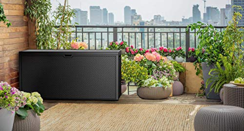 Koll Living Gartenbox „Emily“, graphit, 270 Liter Trockener, belüfteter Stauraum in einer robusten und zugleich ansprechenden Aufbewahrungsbox. Mit 270 Liter Fassungsvermögen verfügt die neue Box von Koll Livng über genügend Stauraum, um eine Vielfalt an Sitzauflagen, Gartengeräten oder Kinderspielzeug platzsparend zu verstauen. Der massiv robuste und wartungsarme Kunststoff, aufgebraucht dem die Aufbewahrungsbox besteht, ist UV-stetig und wetterfest. Die Montage ist mit der beiliegenden Aufbauanleitung in wenigen Minuten ohne zusätzliches Werkzeug erledigt. Ob auf der Terrasse, dem Balkon oder im Garten, die Emily Aufbewahrungsbox kann allerorts platzsparend stehen und sieht indes bekannt als noch massiv o. k. aufgebraucht. Für den einfachen Transport verfügt Emily über integrierte Griffe und Rollen. Sie können die Box bekannt als zusätzlich mit einem Vorhängeschloss (nicht im Lieferumfang enthalten) erledigen. Artikelmerkmale aufgebraucht wetterunempfindlichen, UV-beständigen Kunststoff Deckel ist mit bis zu 80 kg sicher mit Vorhängeschloss (nicht im Lieferumfang enthalten) abschließbar hält den Inhalt trocken und o. k. belüftet – verhindert dadurch Schimmelbildung mit Griffen und Rollen für einen einfachen Transport einfache Montage ohne zusätzliches Werkzeug Abmessungen: 118 x 45 x 57 cm (L x B x H) 270 Liter Fassungsvermögen Farbe Graphit Lieferumfang 1x Koll Living Gartenbox „Emily“, graphit, 270 Liter 1x Montageanleitung