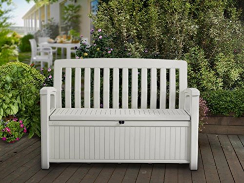 Koll Living Gartenbank/Aufbewahrungsbox/Auflagenbox Farbe Weiß – 227 Liter – Deckel belastbar bis 272 KG – Belüfteter Innenraum – kein übler Geruch oder Schimmel – Modell 2024