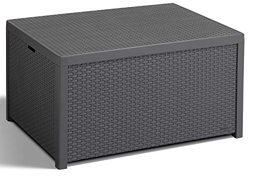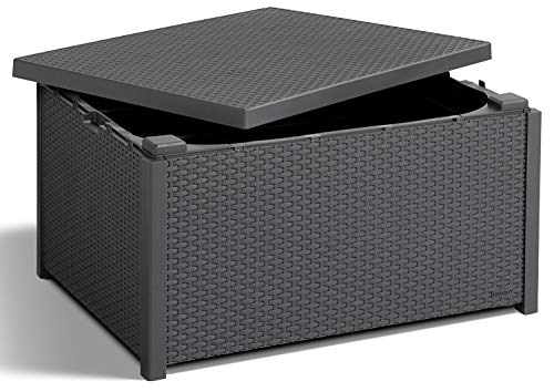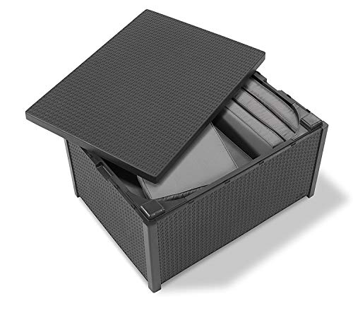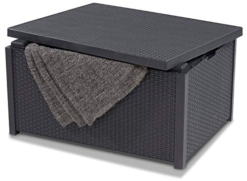 Tisch per Kissenboxfunktion in naturgetreuer Rattanoptik