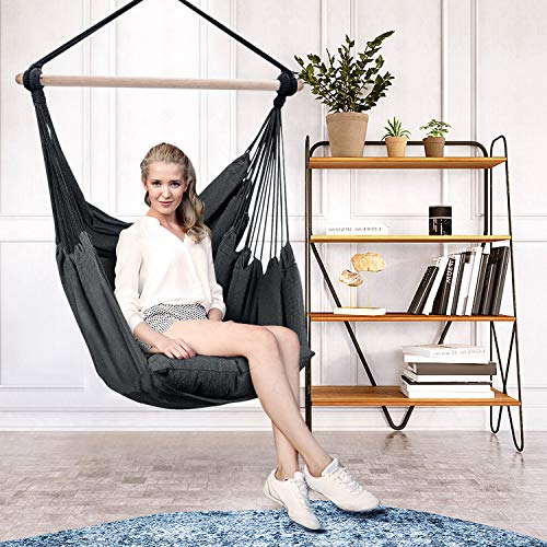【Tragbarer Hängemattenstuhl】Im Einigung zu schweren Eiersesseln ist der Hängesessel für den Innen- und Außenbereich leicht und einfach zu verschieben, wiegt dessen ungeachtet 3,2 kg, und kann drinnen und draußen platziert werden. Es gibt eine Vielzahl von Größen, Farben, Hängeschaukel nimmt relativ wenig Platz im Einigung zu einer normalen Hängematte ein.