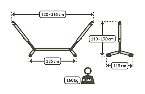 GROß UND BELASTBAR: Breite der Liegefläche: 160 cm – Länge: 350 cm – Belastbarkeit: 160 kg – Mindestabstand: 310 cm – Material: 100% Baumwolle