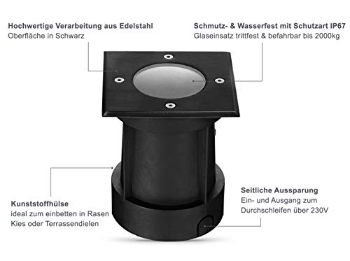 lambado® LED Bodenstrahler für Außen in Schwarz – Wasserdicht & Befahrbar inkl. 5W GU10 Strahler warmweiss dimmbar – Eckige Bodenleuchte/Bodeneinbaustrahler IP67 für Terrasse & Garten