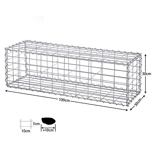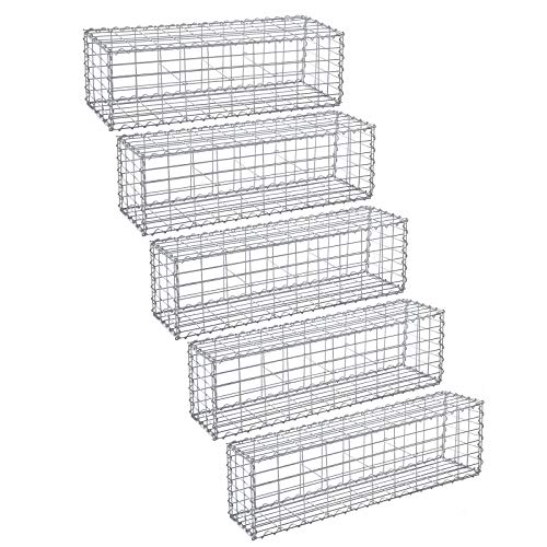 LARMNEE Gabionen 100 x 30 x 30 cm, 5er Set, Steinkorb, Steingabione, Maschenweite 10 x 5 cm, aus rostfreiem verzinktem…