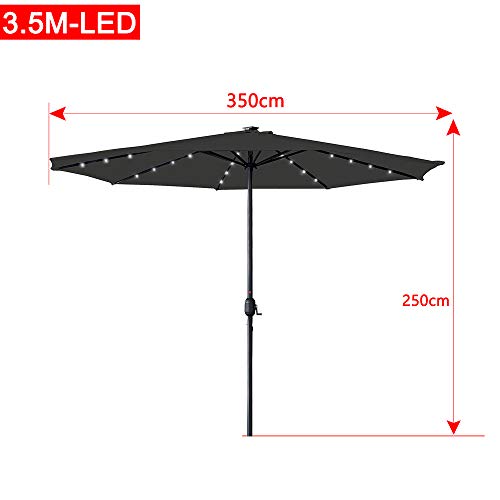 【3.5M Dunkelgrau Gartenschirm】 Dieser Dunkelgrau Außenschirm mit 350cm. Durchmesser Schatten Sie einen großen runden, quadratischen oder rechteckigen Tisch mit 3 bis 4 Stühlen. Mit der Höhe des 260cm Designs ist egal in welcher Höhe für jeden im Rahmen. Ideal für Wohn- und Gewerbegebiete.