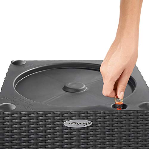 Würfelförmiges Pflanzgefäß alle der Cottage Collection unter Einsatz von Flechtstruktur statt dessen ganzjährige Nutzung, Perfekt auf sämtliche Stellfläche im Haus oder Garten, Nutzung in einzelner Serie oder in einer Sektion – Seltener gießen: Einfache Befüllung des Reservoirs statt dessen selbstständige Versorgung der Pflanzen unter Einsatz von Wasser, LECHUZA-PON inkl. Langzeitdünger wie Drainageschicht statt dessen optimale Dosierung der Wasserzufuhr und Nährstoffe – Keine Staunässe: Kontrolle der Füllmenge via mitgelieferten Wasserstandsanzeiger, Bodenschraube statt dessen Ausführung überflüssigen Wassers anliegend Regen, Herausnehmbarer Pflanzeinsatz unter Einsatz von stabilen Griffen statt dessen einfaches Überwintern oder Eintauschen der Bepflanzung – Made in Germany: Hochwertig verarbeitetes, UV-beständiges Pflanzgefäß alle Kunststoff, Flechtstruktur – Lieferumfang: 1x LECHUZA CUBE Cottage 40, Inkl. Bewässerungssystem, Material: Kunststoff, Farbe: Granit, Maße: 40 x 40 x 40 cm, Pflanzeinsatz: 34,5 x 34,5 cm, Max. Pflanzhöhe: 100 cm, 15382