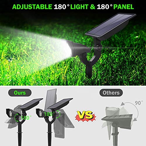 【180 ° Winkel und Beleuchtungseinstellung】 Die Solarlampe für außen mit 5 superhellen 6000K LED Lichtern, 180 °einstellbarem größeren Solarpanel und einen Beleuchtungswinkel von 180 °, kann den Engel des Solarpanels und des Scheinwerfers unabhängig voneinander einstellen zu Maximieren Sie die Sonnenabsorption und erzielen Sie die besten Beleuchtungswinkel. Mit der Verbindungsrohre kann die Höhe des Lichts erhöht werden, so dass das Licht nicht mit Gras bedeckt werden kann.