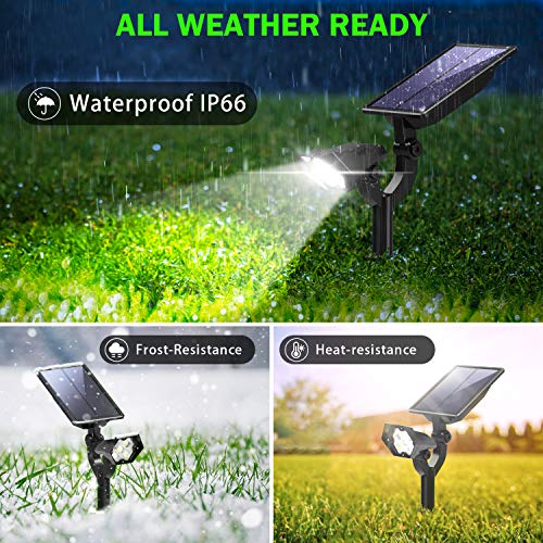 【IP66 Wasserdicht und Langlebig】 Das LED Solarstrahler mit der wasserdichten Schutzart IP66 hält es schlechtem Wetter wie starkem Regen, verrücktem Wind und starkem Schnee stand. Darüber hinaus besteht die Wärme- und Frostbeständigkeit des Produkts alle hochwertigem Antiblockiersystem-Material, das das Gartenlicht vor Feuchtigkeit und Staub schützt und die Haltbarkeit und Langzeitnutzung bewahrt.