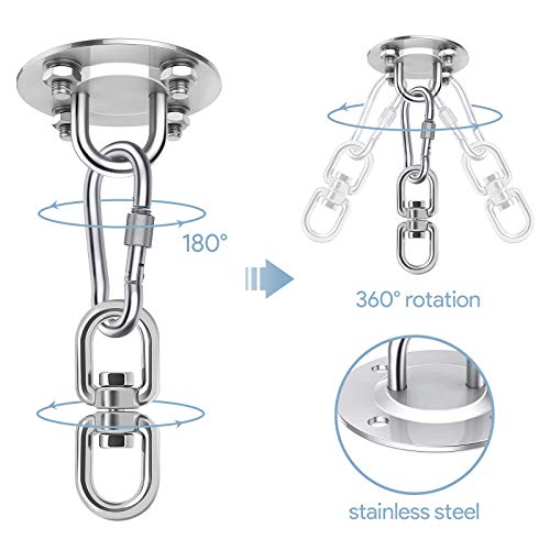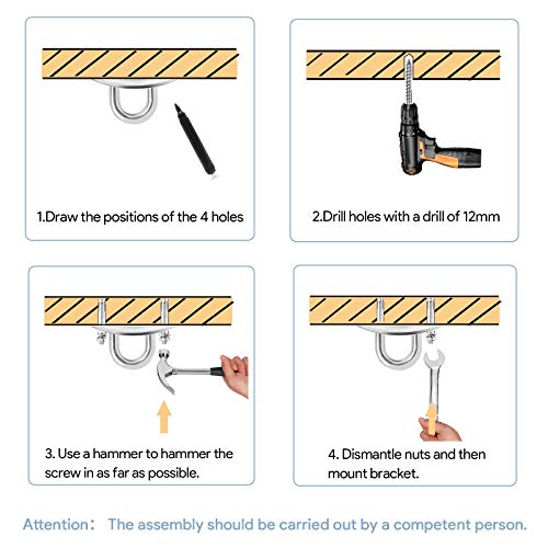 Massives und Sicheres Material: Dieses Wandbefestigungs-Set hält Statischen Belastungen bis zu 300kg insgesamt stand. Die runde Deckenhalterung ist aus hochwertigem rostfreiem Edelstahl, verschleißfest und langlebig. Die Öse und Trägerplatte sind verschweißt, um eine höhere Stabilität und Tragfähigkeit zu gewährleisten.