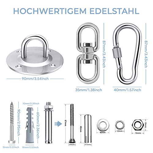 Universell einsetzbar: Das komplettes Befestigung Set bietet Mehr Möglichkeiten. Als Aufhängung für Slingtrainer, Wandhaken für Yogatuch oder Halterung für Boxsäcke usw. Es kann in Ihren Fitnesstudios, Yogaclubs und anderen Sportvereinen verwendet werden, auch in Ihren Wohnzimmern, auf Balkons, in Schlafzimmern usw. verwendet werden.