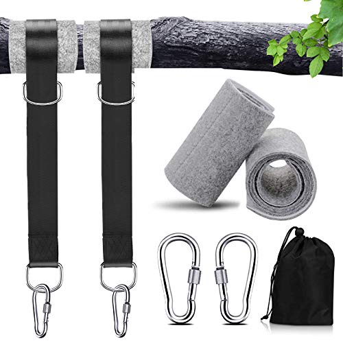 PRAKTISCHES SET: Sie erhalten 2 Karabiner, 2 Gurte mit 4 D-Ringe, 2 Rindenschoner aus Filz, eine Montageanleitung und ein praktischen Beutel zum Aufbewahren des Sets. Perfekt für die meisten Arten von Schaukeln, wie z.B.Nestschaukel, sowie auch für Hängesessel und Hängematten.