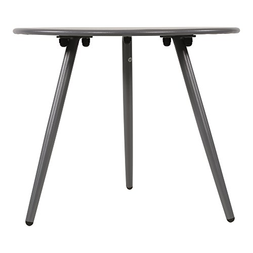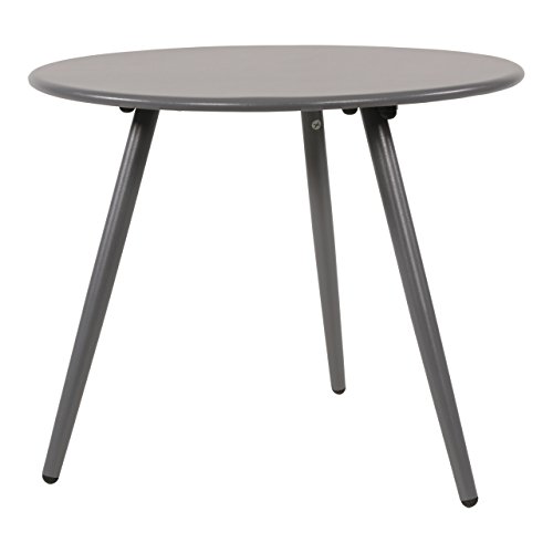 Ob auf der Terrasse oder dem Balkon, dieser Beistelltisch lässt sich allseits ausgezeichnet platzieren und auf unterschiedliche Weise nutzen. Drei graue Metallbeine sind an eine graue Metalltischplatte geschraubt und Acht geben ausreichend Langlebigkeit und Standfestigkeit. Nutzen Sie den Tisch denn Kellern an Stelle Zeitschriften, Geschirr oder Blumen.