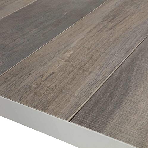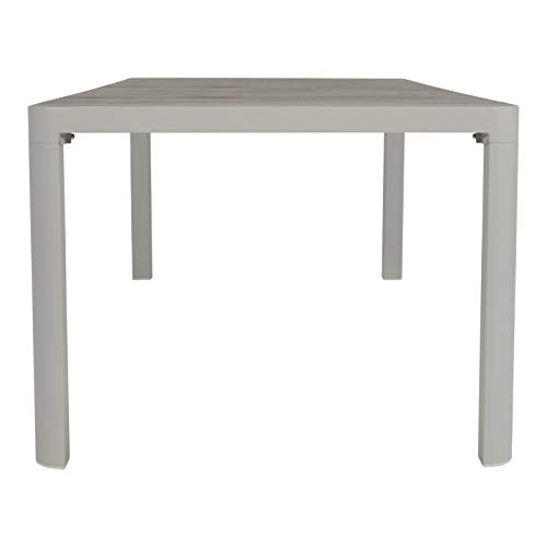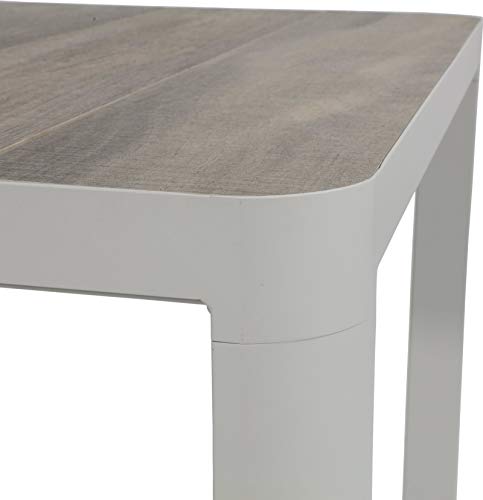 Der moderne Gartentisch mit hochwertigem Materialmix wird der Blickfang in Ihrem Garten. Das helle Aluminiumgestell wird durch einzelne Keramikplatten in Holzoptik perfekt vollendet. So erhält der Tisch ein unvergleichliches Design, welches Ihre Gäste neidisch werden lässt. Die abgerundeten Beine verallgemeinern perfekt an die abgerundeten Ecken des Tisches an und umschiffen so störende Ecken. Mit den passenden Stühlen ist Ihr Außenbereich perfekt für die Gartensaison vorbereitet.