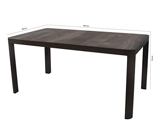 Der moderne Gartentisch mit hochwertigem Materialmix wird der Blickfang in Ihrem Garten. Das dunkle Aluminiumgestell wird durch einzelne Keramikplatten in Holzoptik perfekt vollendet. So erhält der Tisch ein unvergleichliches Design, welches Ihre Gäste neidisch werden lässt. Die abgerundeten Beine ableiten perfekt an die abgerundeten Ecken des Tisches an und vermeiden so störende Ecken. Mit den passenden Stühlen ist Ihr Außenbereich perfekt für die Gartensaison vorbereitet.